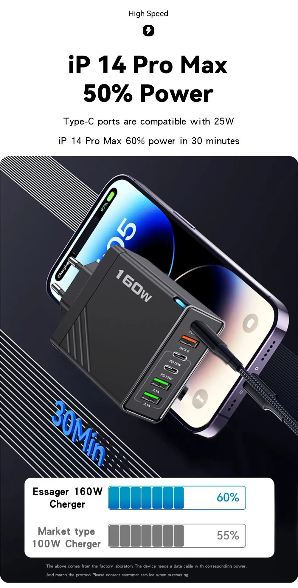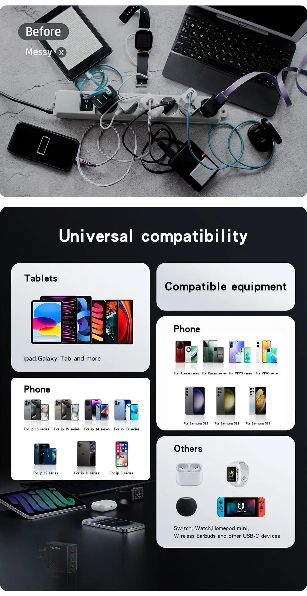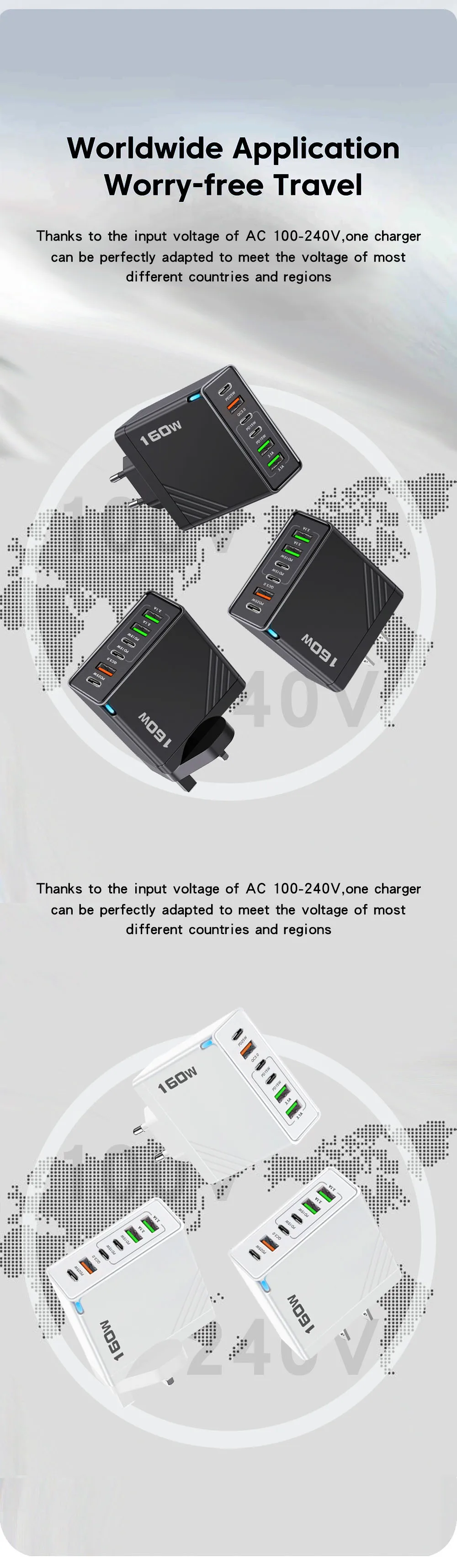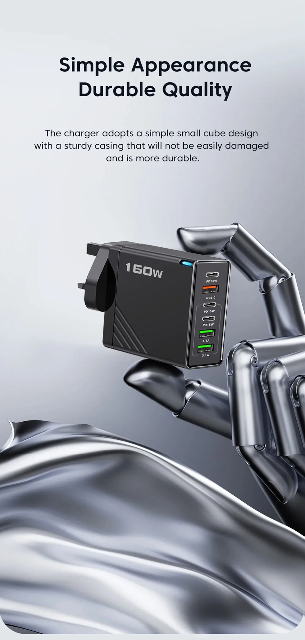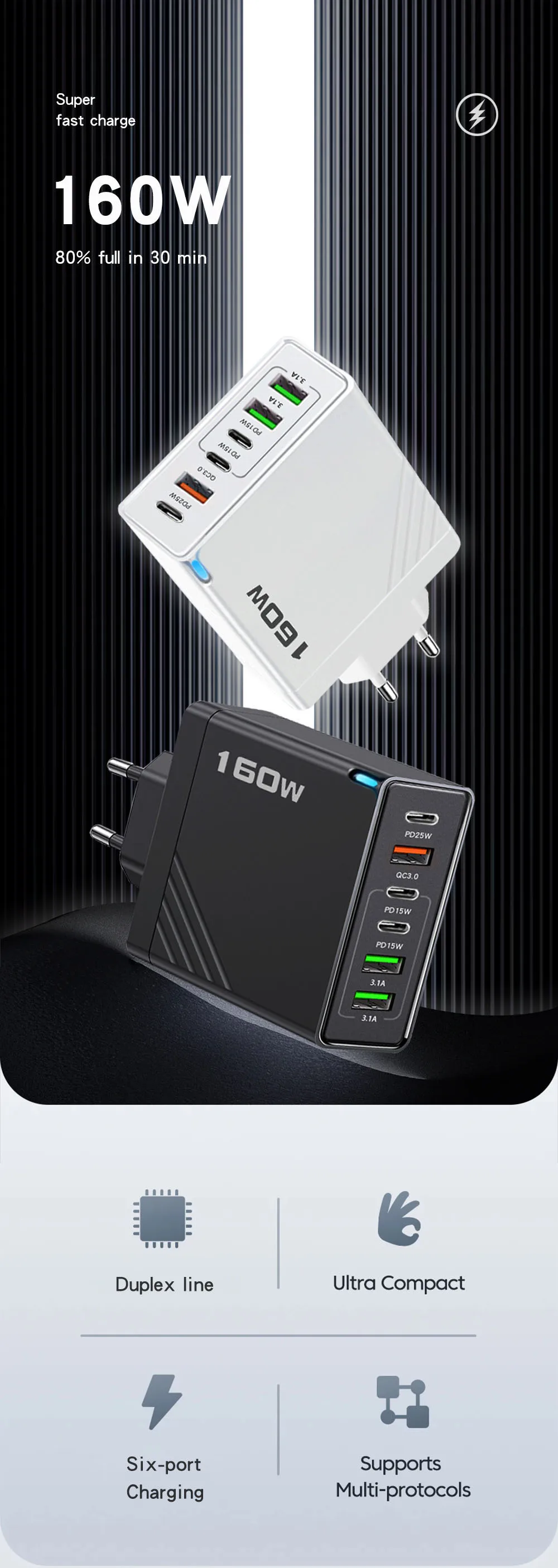 Experience powerful, efficient, and convenient charging with the Maerknon 160W Multi-Port Fast Charger — the perfect all-in-one solution for all your devices. Designed with six versatile ports, including USB and Type-C outputs, it supports fast charging for smartphones, tablets, and laptops from brands like iPhone, Samsung, Huawei, and Xiaomi. Its intelligent charging technology automatically detects and delivers the optimal power for each connected device, ensuring safe, stable, and high-speed performance every time. Compact, sleek, and portable, this universal wall charger is ideal for home, office, or travel use, keeping all your devices fully powered and ready to go.